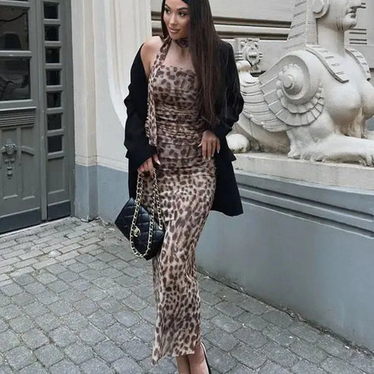 MAXIKLEID MIT DRAPIERTEN ZÖPFEN AUS LEINENMISCHUNG